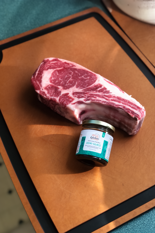 Our demi-glace is made the way great kitchens do it: roasted bones, real vegetables, long simmering, and a slow reduction that builds natural collagen and body. No gums, no starches, no shortcuts. By focusing on flavorful offcuts like backs, necks, and feet from responsible producers, we turn overlooked parts of the animal into a clean-label, high-impact pantry staple that delivers true restaurant-level flavor any night of the week.