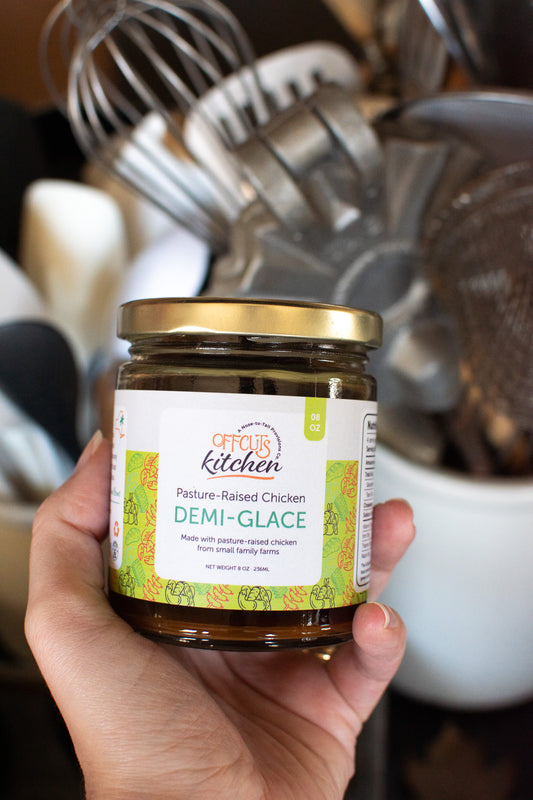 Made with roasted chicken backs and feet for extra richness, our pasture-raised chicken demi-glace brings deep, savory flavor to any dish.